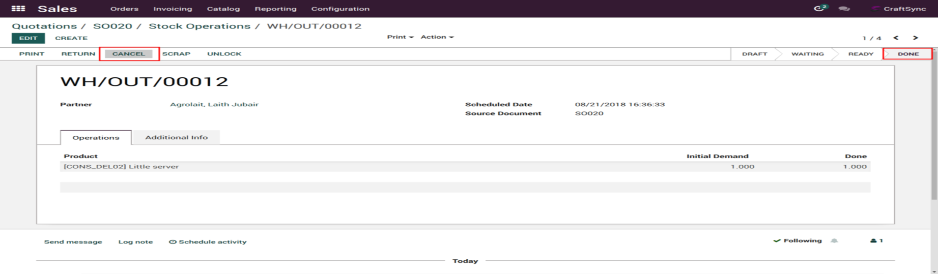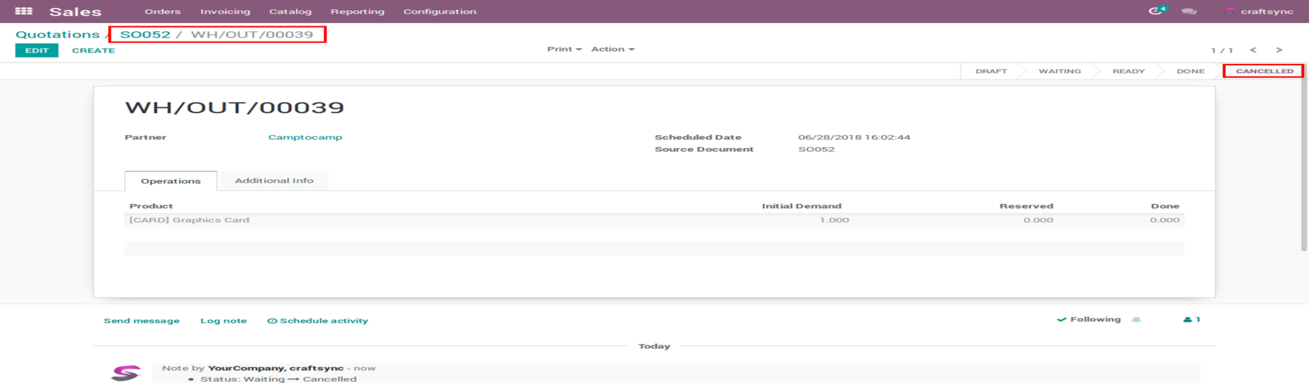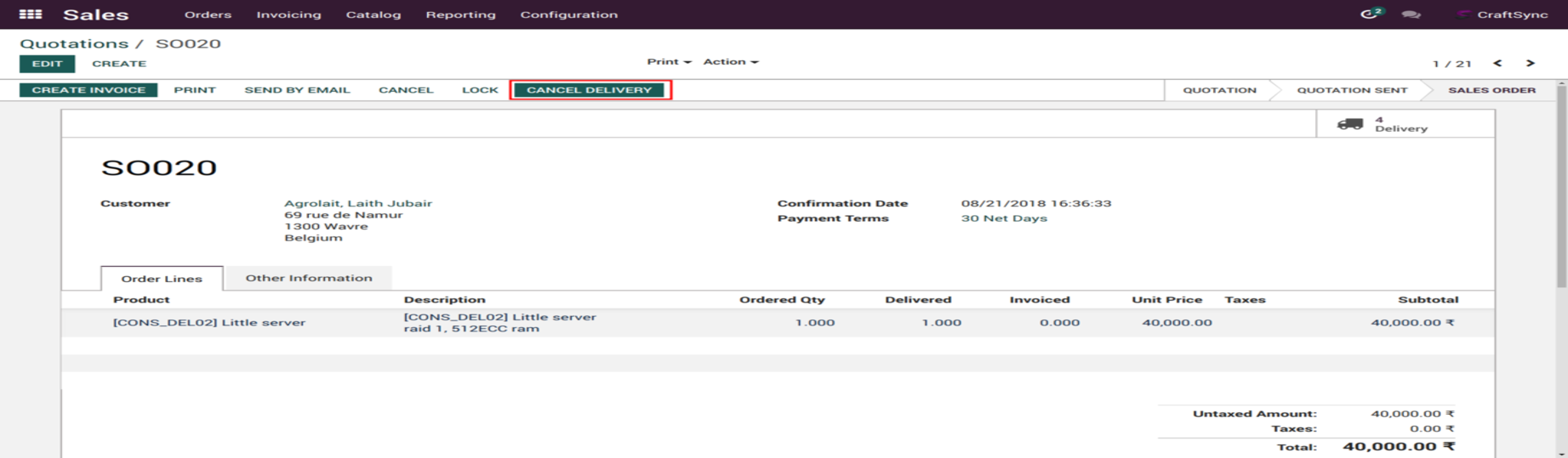 After cancelling delivery order, You can see the delivey is in 'Cancelled' state and user can delete that delivery.