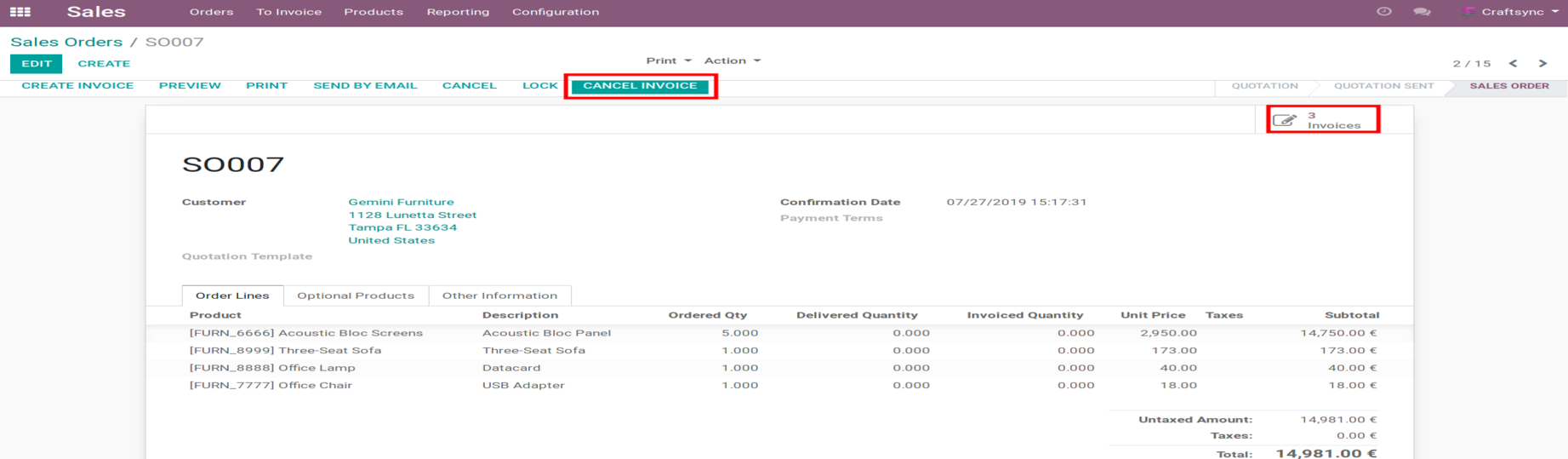 After Click Cancel Invoice, if order has one invoice than system will direct cancel that invoice, if more than one invoice than user can select which invoice order want to cancel.