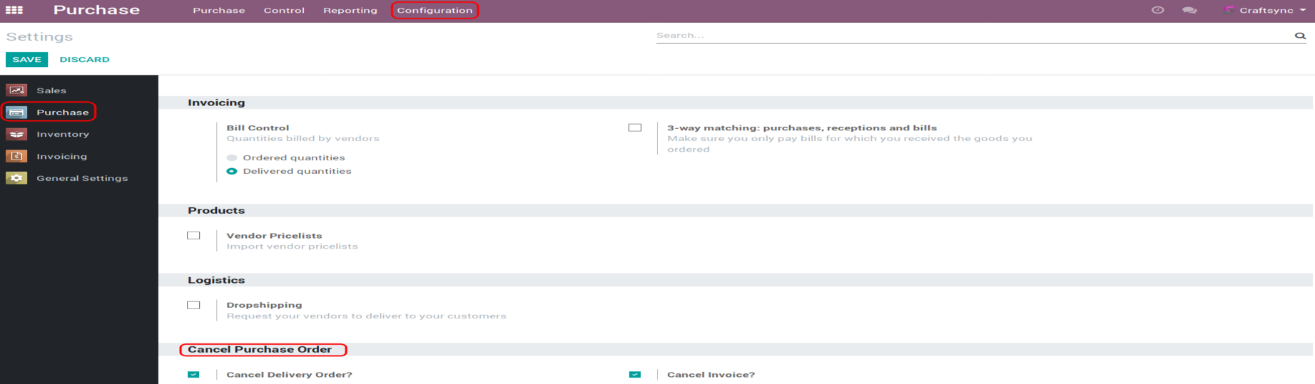 Cancel Purchase Order configuration will appear in Purchase Configuration.
