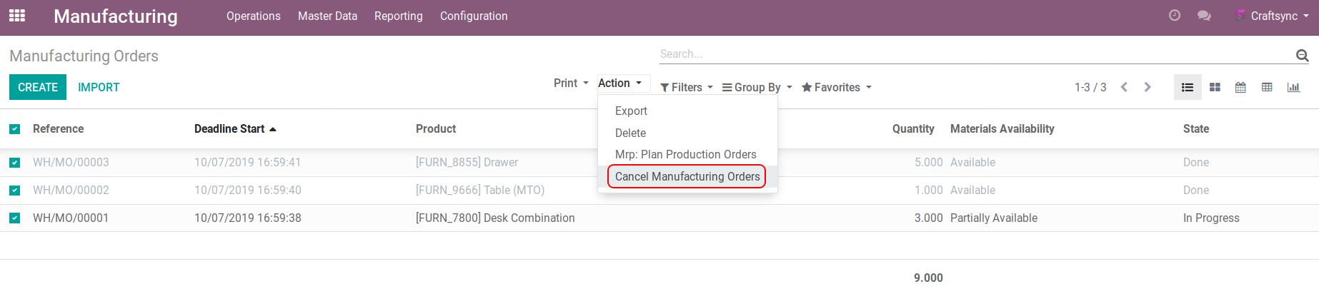 - This application is allow user to multiple manufacturing order cancel on a single click