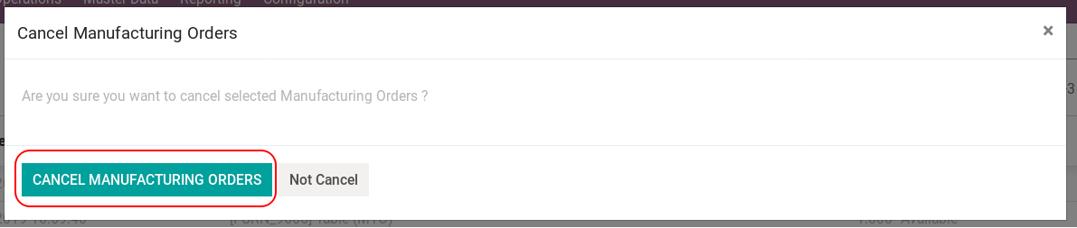 Below image will give warning for sure to cancel selected manufacturing orders: