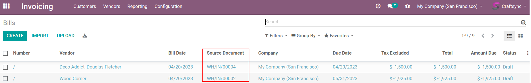 Below image of Bills were created from shipments.