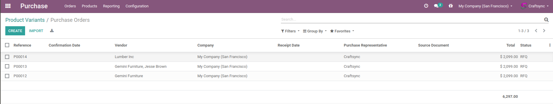 Below is a second example of a recently created purchase orders based on the user's selected configuration.