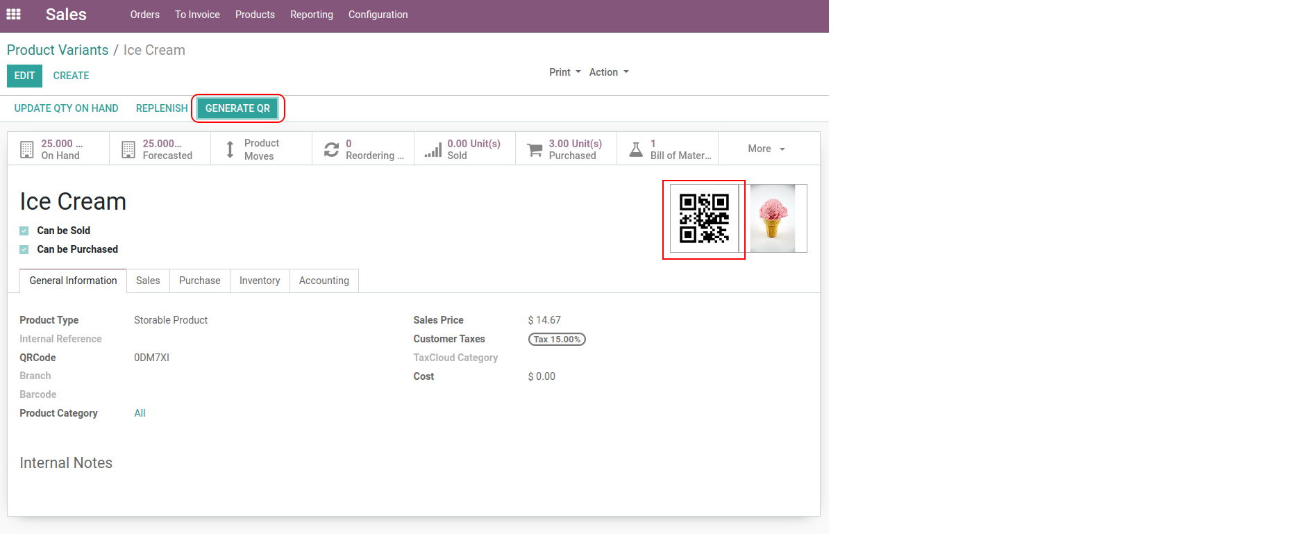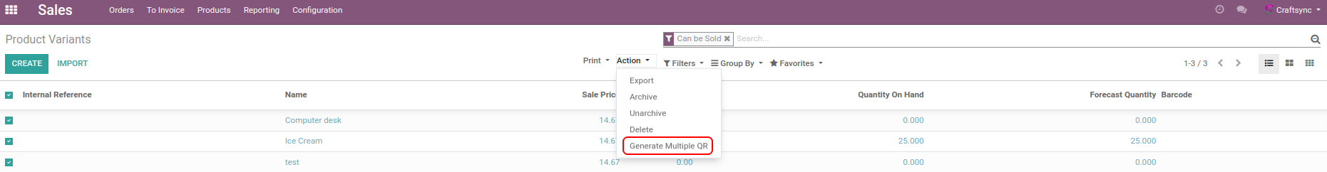 Detail view of product variant that user can generate multiple products QR code in one click.