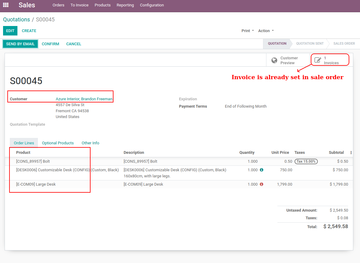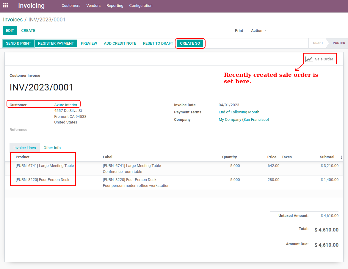 Invoice is also set in sale order & user can directly check order from smart button of sale order in invoice detail view.