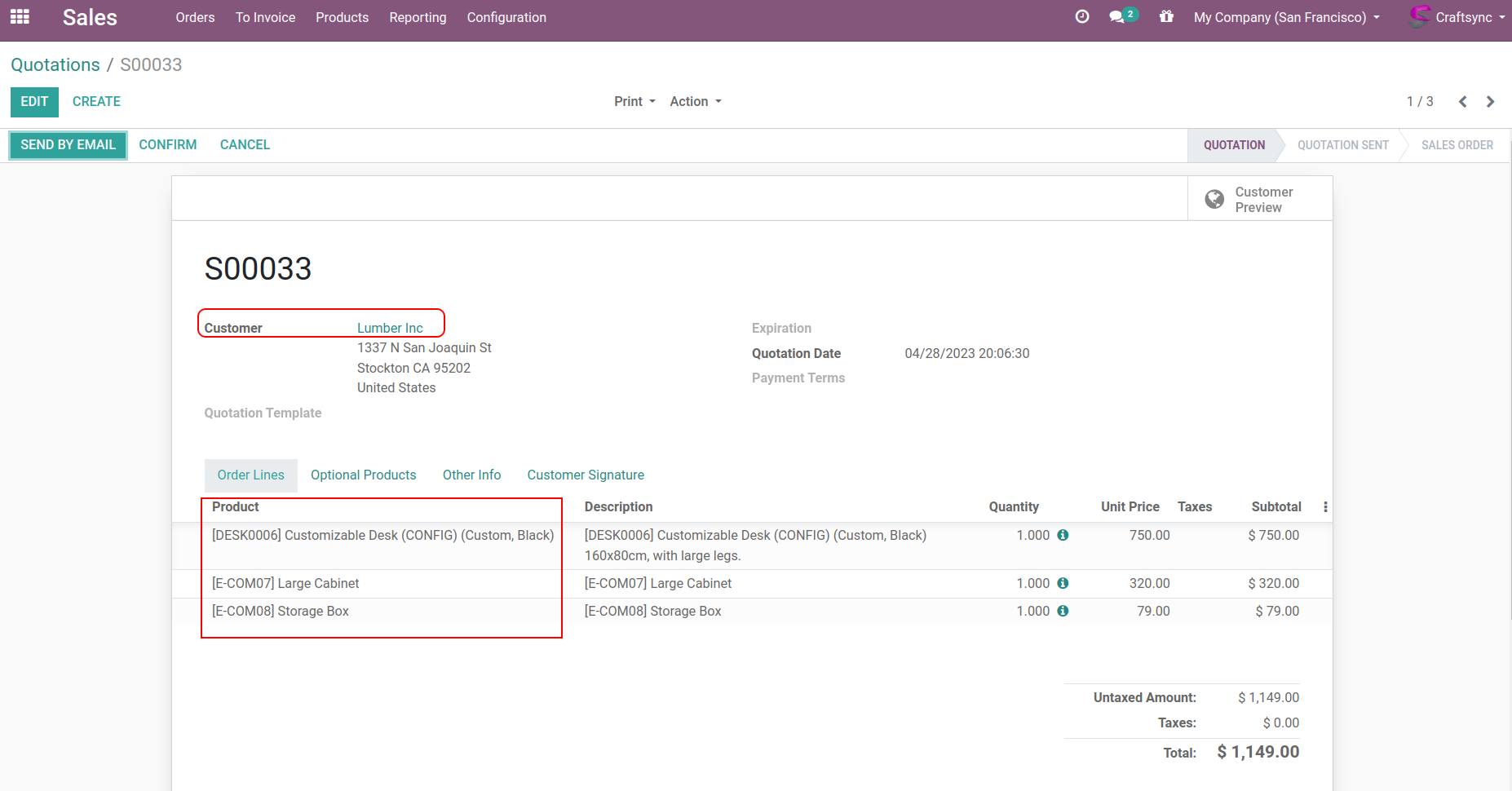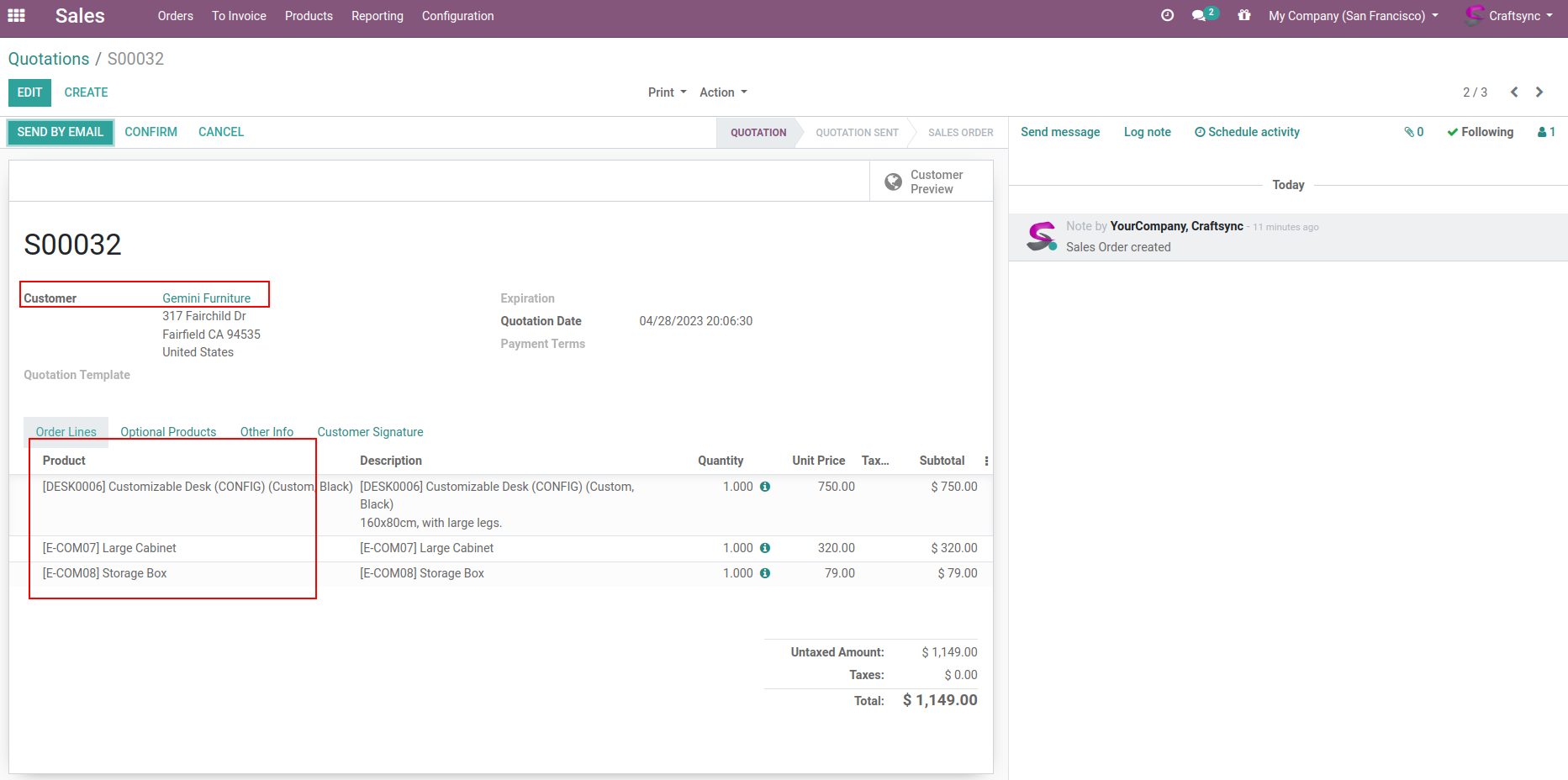 Below is a second example of a recently created orders based on the user's selected configuration.
