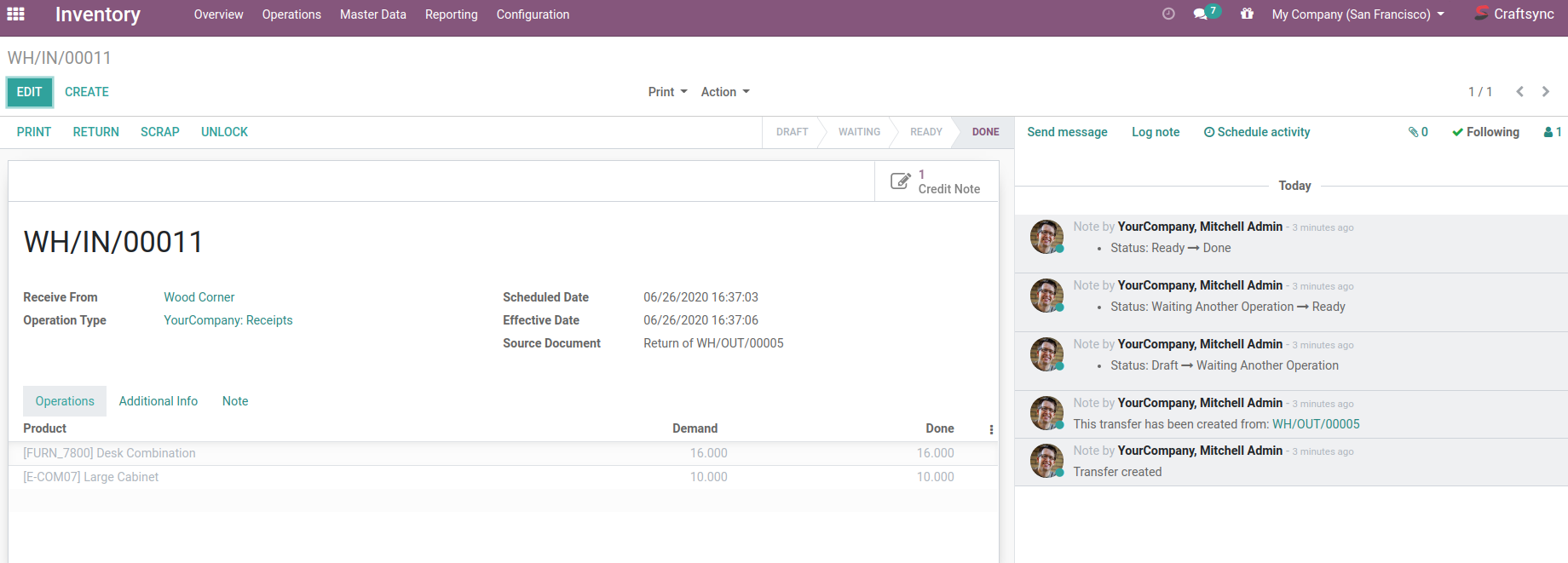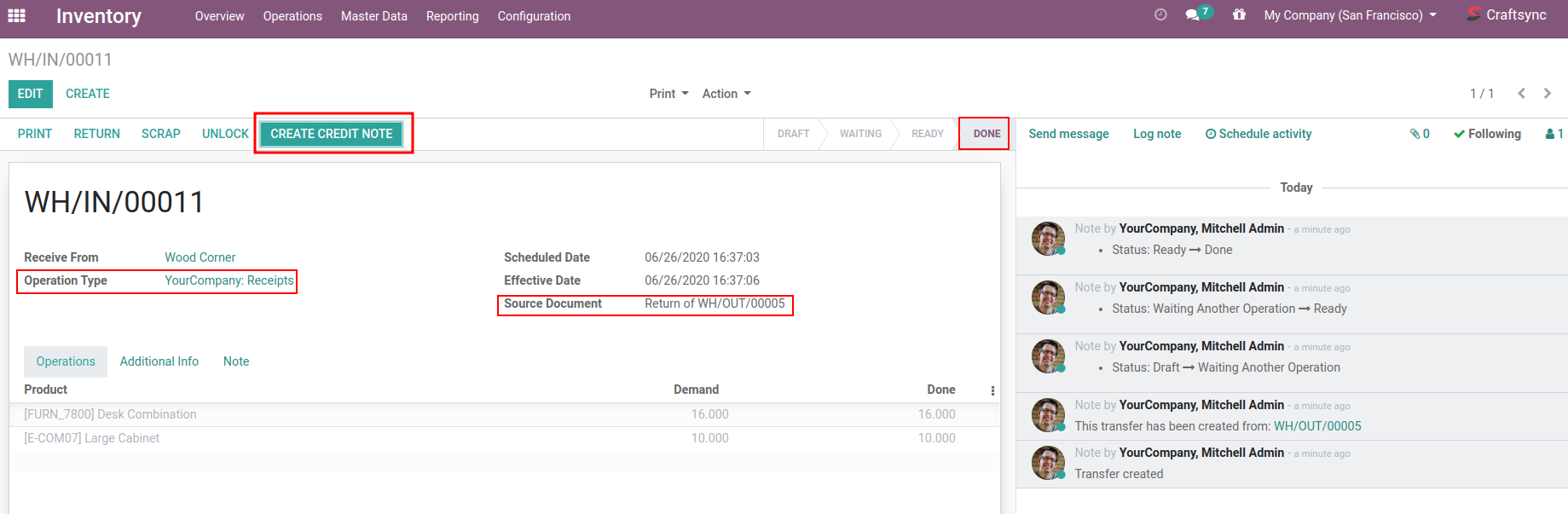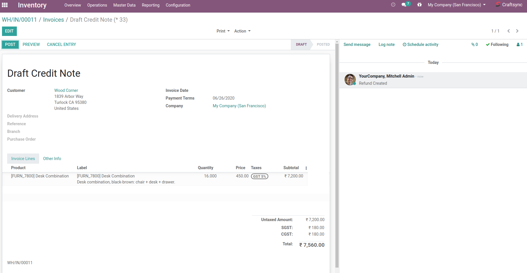 When user click on credit note they will select which product they need in credit note. And they can select journal from that popup.