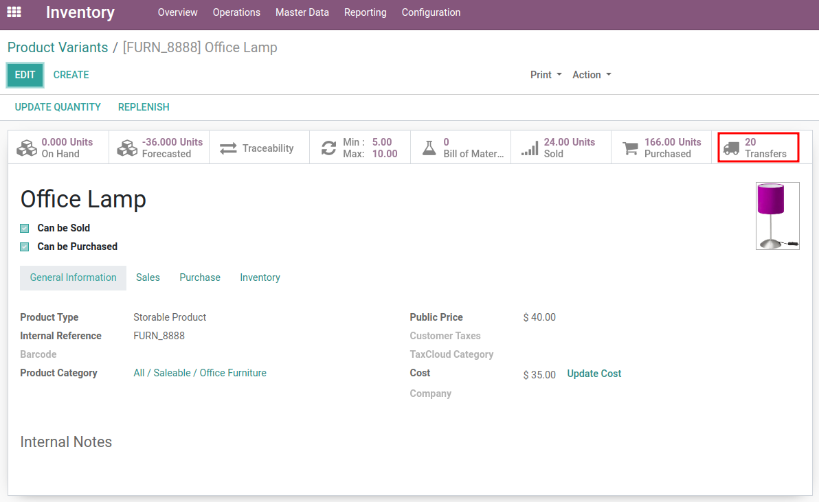 Here are Delivery orders whoes having office lamp as a product, DO list view having 20 pickings.