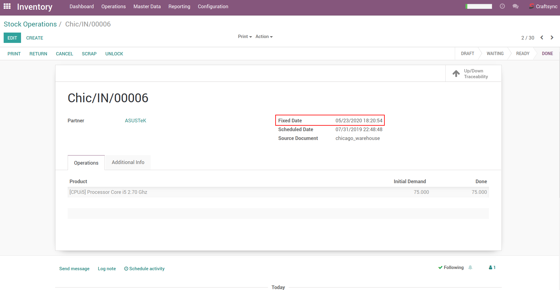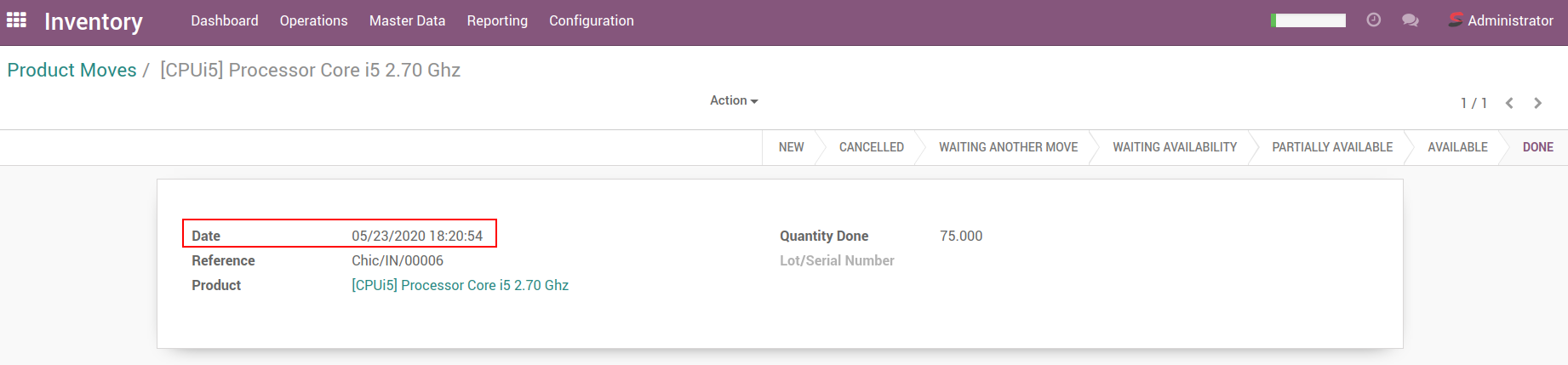 • Fixed date value is set in related Product Moves(stock.move.line).