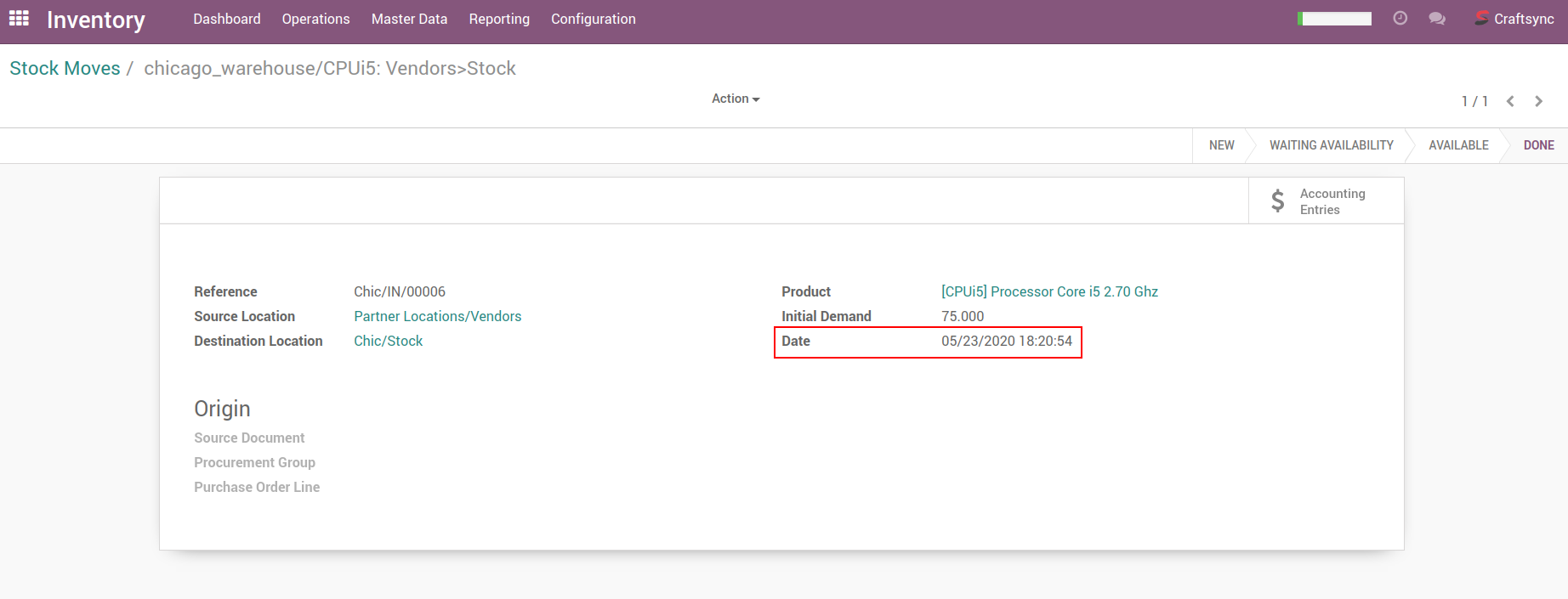 • Fixed date value is set in related Stock Moves(stock.move.line).