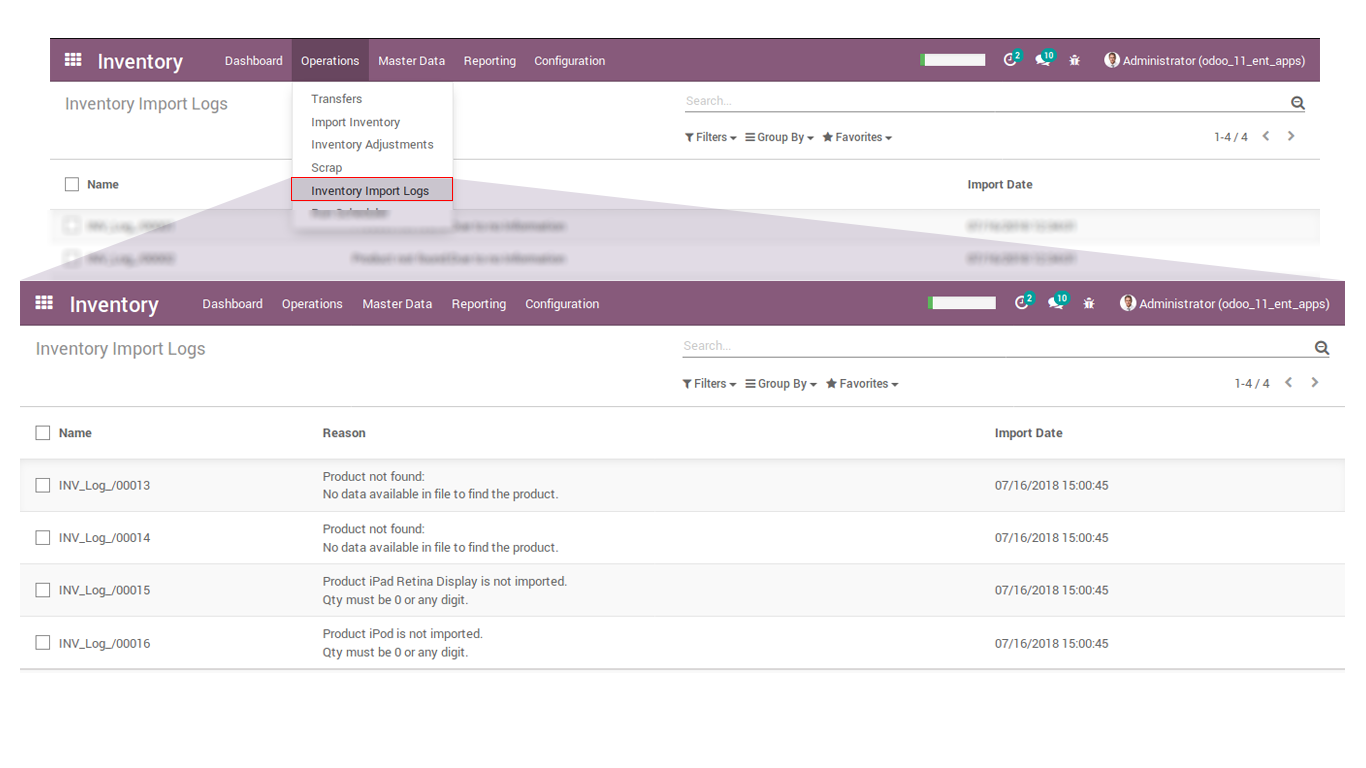 • You can see all the logs and errors when import inventory process gets some problem.