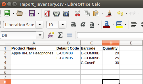 • If the file have some product with just name ,bacode or Default code then odoo will find those products from system and create an Inventory adjustment with given qty in file.