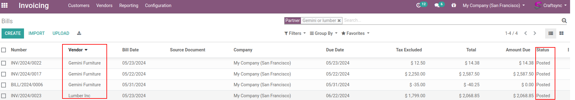 Here are Invoice/Bills list view, having all Invoices/Bills are in posted state.