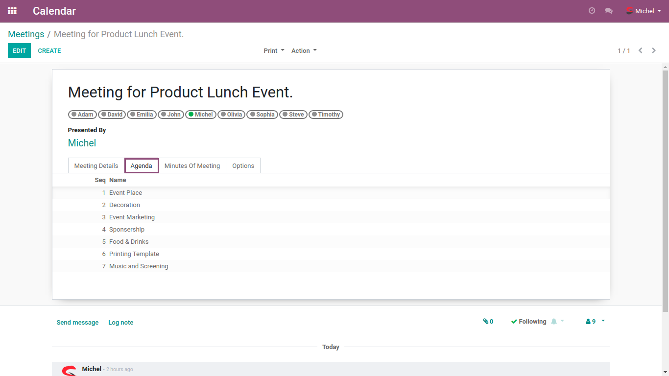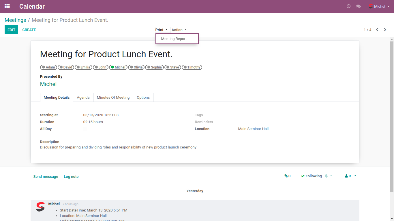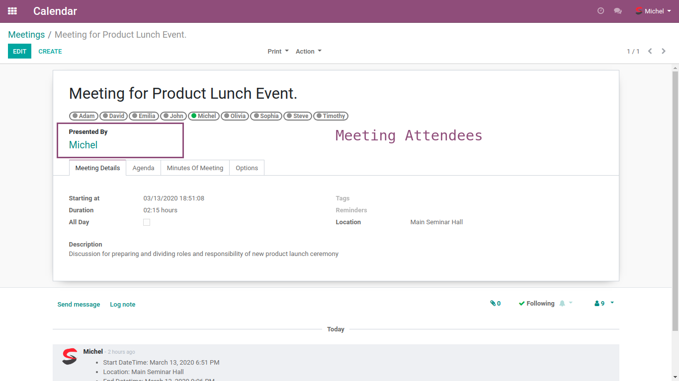 • User can define Meeting presenter from this screen, It will also appear on MOM report.