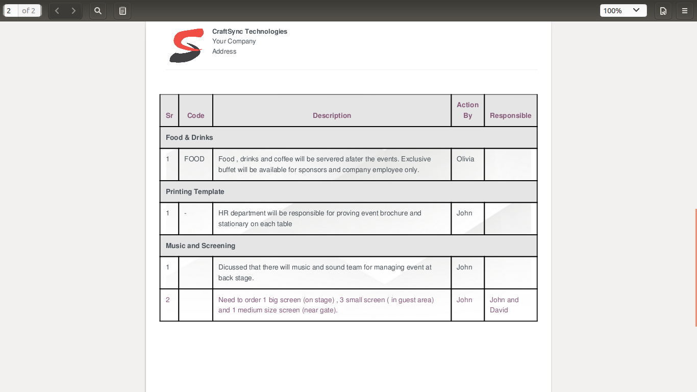 This module will allow you to take note of key points dicusses during meeting and print the report with all the details.