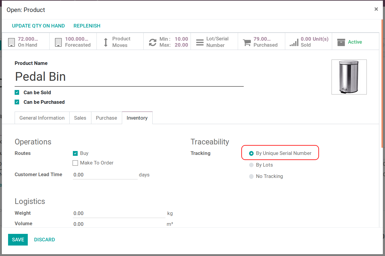 Above is of purchase order with product having configuration of lot and unique serial number.