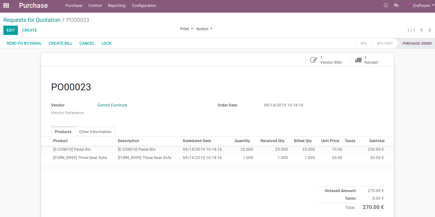 - This application provides facility to create Vendor Bill, Validate Bill and transfer delivery while confirm Purchase quotation and set lot number and unique serial number from xlsx and csv file.