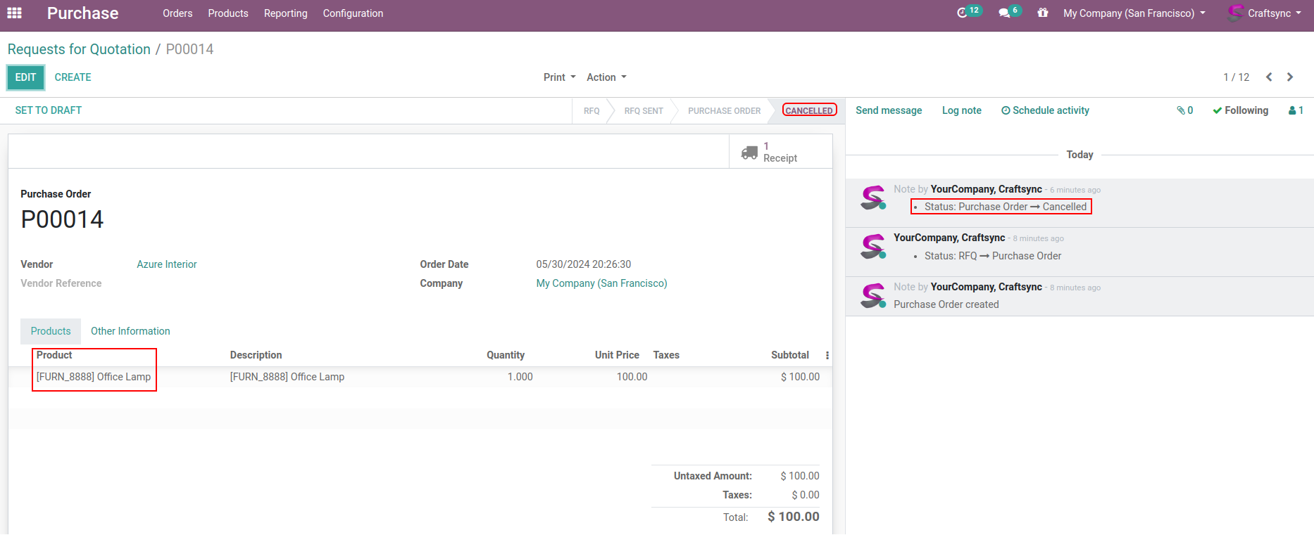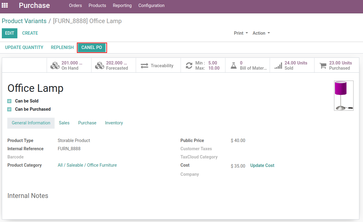Purchase Order cancel from Product