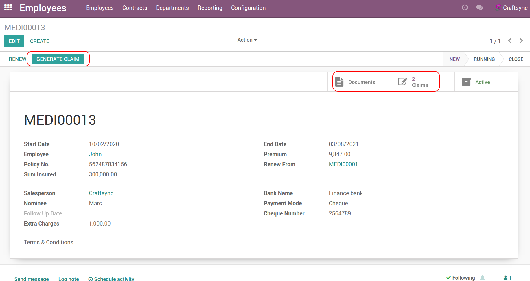 This module allows to track record of employee's mediclaim insurance.