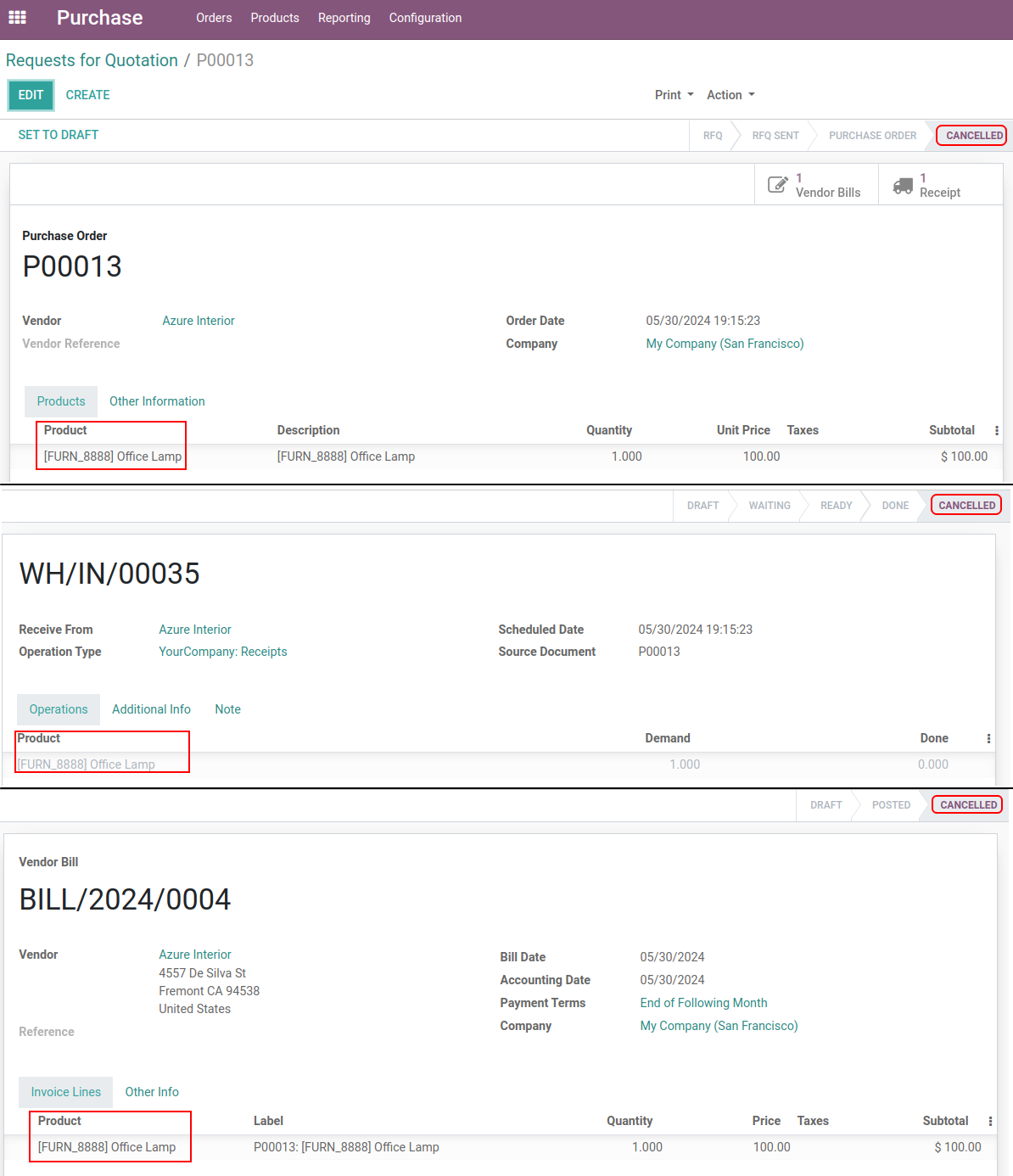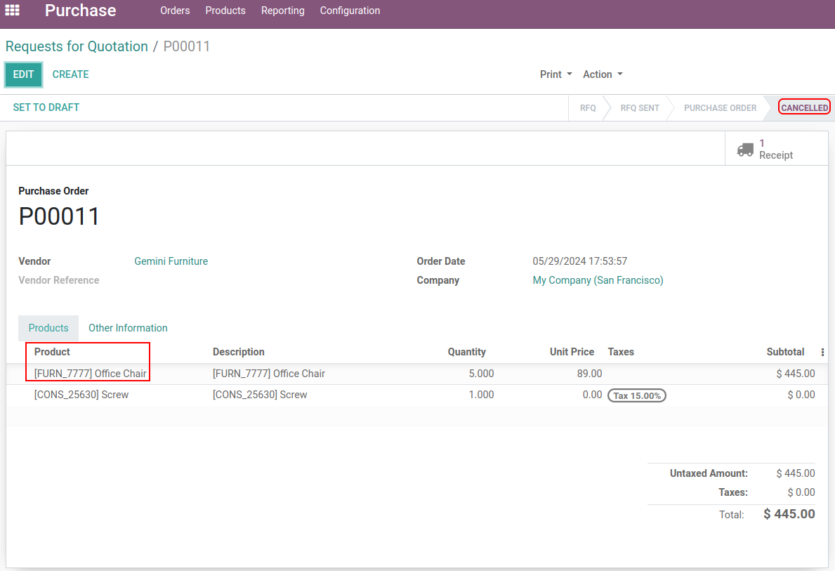 Purchase Order cancel from Product