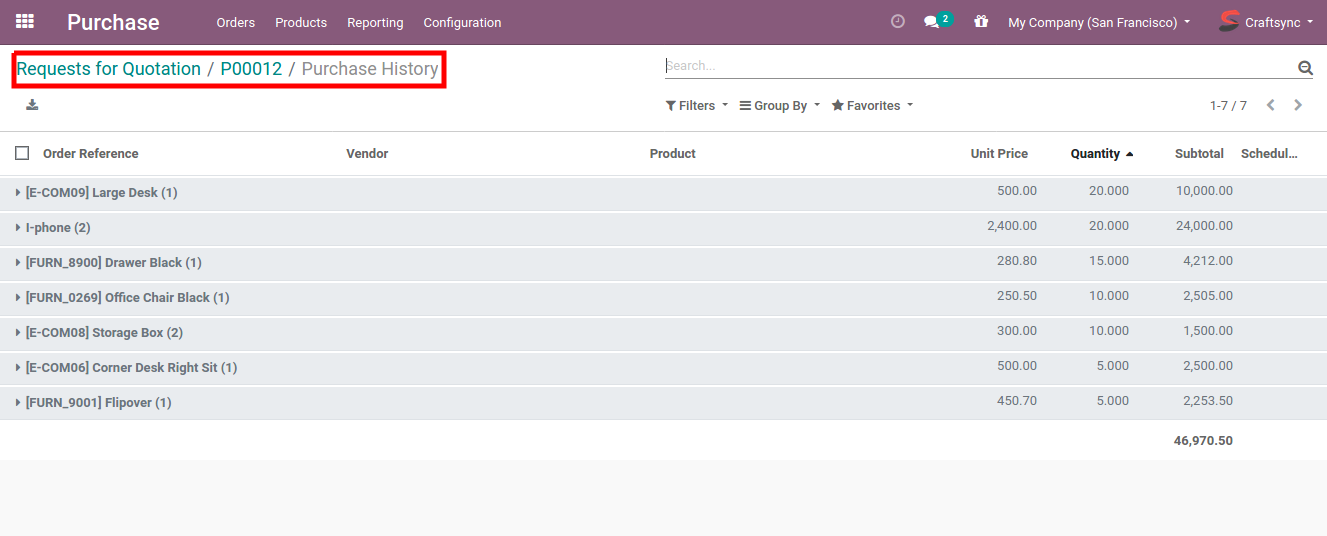 - User can check purchase history of related product from purchase order view.