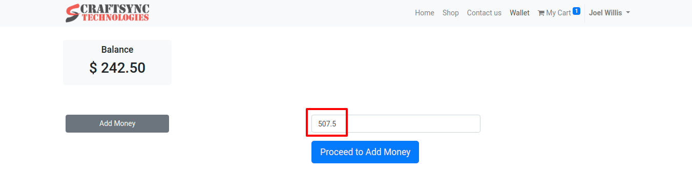 • Here wallet amount is reduced to $ 242.5