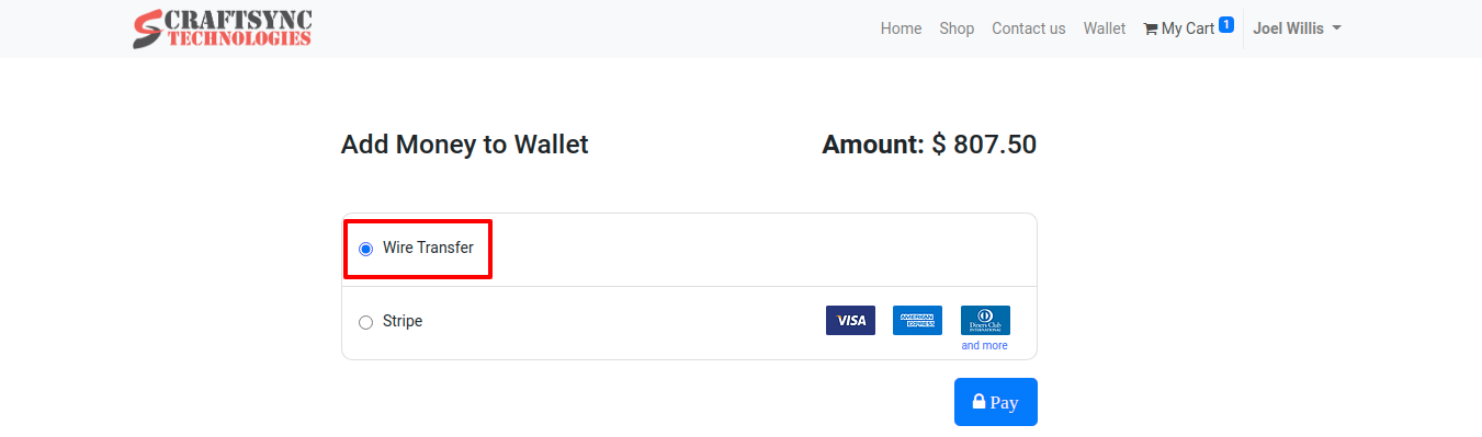 • If User select Wire Transfer payment acquirer then amount will not be added directly in wallet.