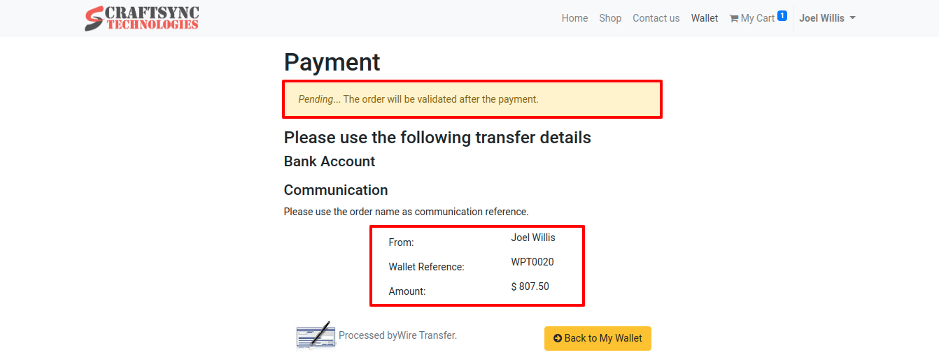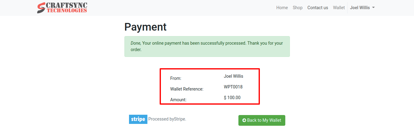 • By clicking on Back to My Wallet button, user can see their wallet amount.