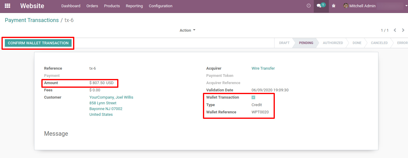 • Any authorize user can confirm wallet transaction and add funds to customer's wallet.