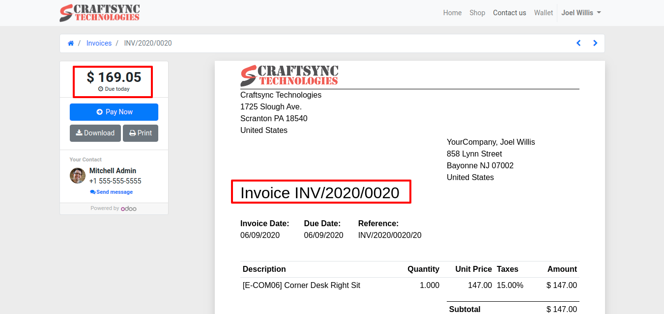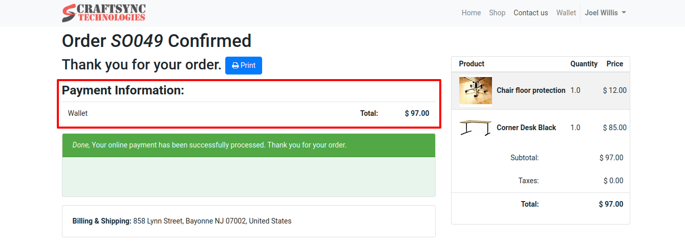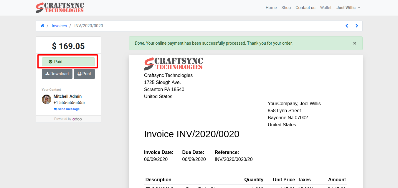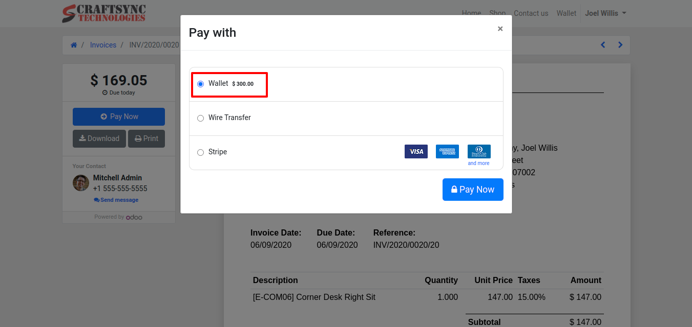 • Invoice is Paid and wallet amount is reduced.
