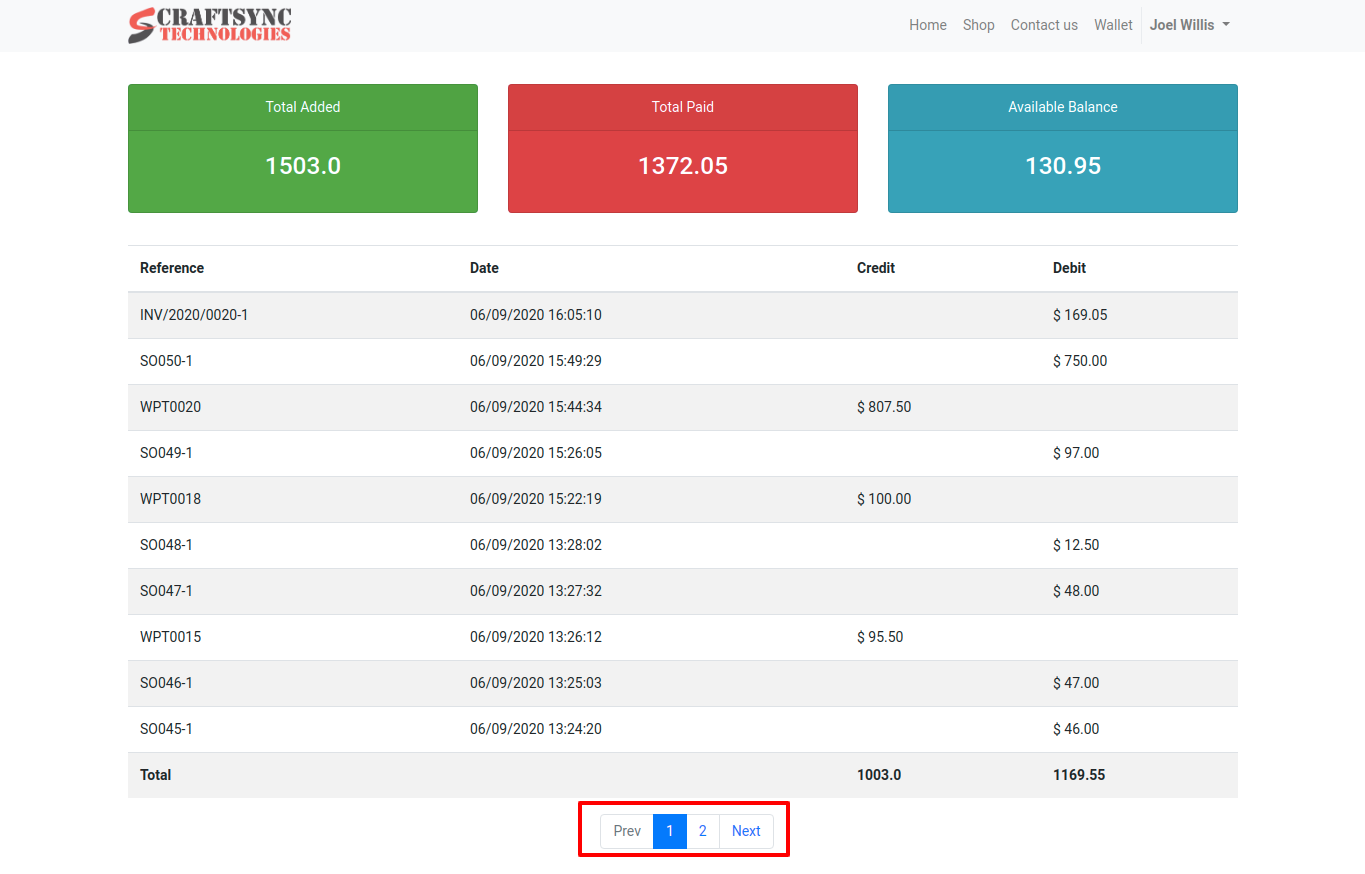 • By default, user can see 10 transactions in one page. User can click on page number for more transactions.