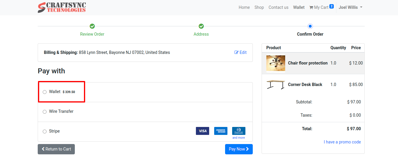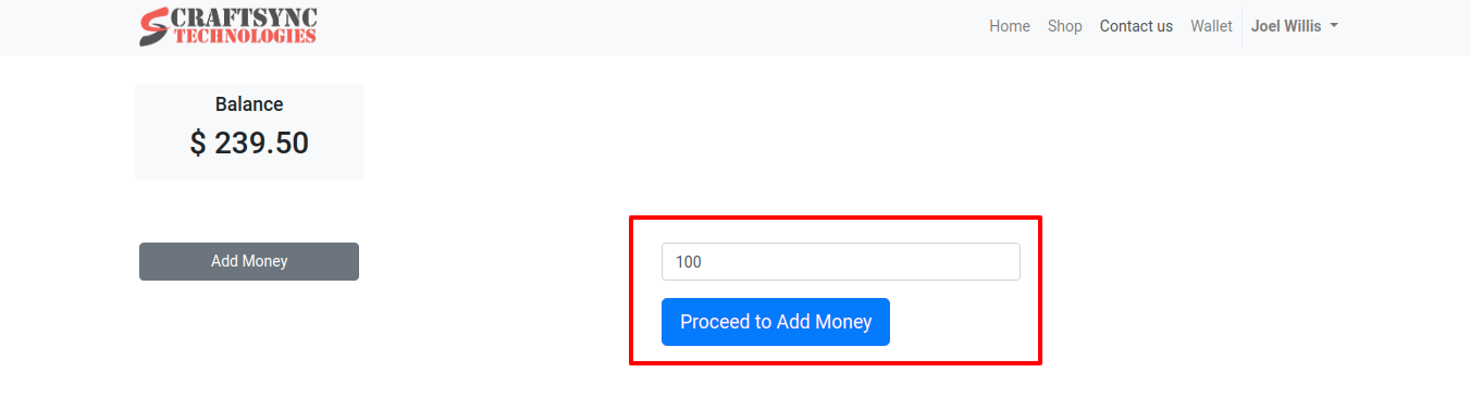 • Here user have $ 339.5 in his wallet and can use it in online shopping.