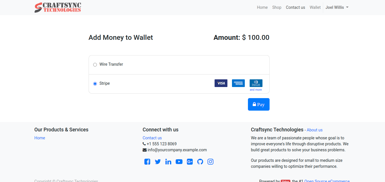 • We are using Stripe payment method to add money in Wallet.